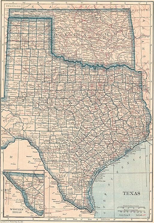 Texas & Oklahoma Map, 1921 Original Art, Antique Maps & Prints Amazon.com: MAPS OF THE PAST Texas and Oklahoma Indian Territory .